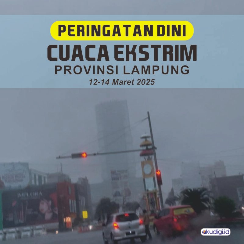 akudigi, Bandar Lampung-Badan Meteorologi, Klimatologi, dan Geofisika (BMKG) Lampung telah mengeluarkan peringatan dini terkait cuaca ekstrem yang diperkirakan terjadi selama tiga hari, mulai Rabu, 12 Maret hingga Jumat, 14 Maret 2025. Kondisi ekstrem ini meliputi hujan lebat disertai kilat atau petir serta angin kencang, yang berpotensi menimbulkan bencana alam seperti banjir dan tanah longsor.